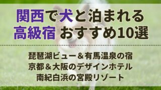 関西で犬と泊まれる高級宿10選を紹介。琵琶湖の温泉旅館やホテルビワドッグ、京都・大阪のデザインホテル、有馬・白浜のリゾートまで、愛犬同伴OKの設備や条件をわかりやすく解説します。