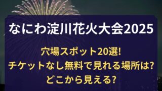 花火大会 なにわ淀川花火大会2025穴場スポット20選!チケットなし無料で見れる場所は?どこから見える?場所取りは? 今回は、なにわ淀川花火大会2025について、次のようなことをまとめてみました。なにわ淀川花火2025穴場スポット♪無料で見れる場所16選!なにわ淀川花火2025穴場スポット♪有料で見れる場所4選! 2025.10.05 花火大会